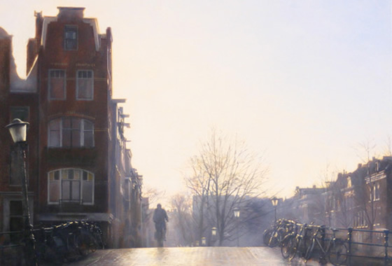 Titel: Grachtovergang met fietser
