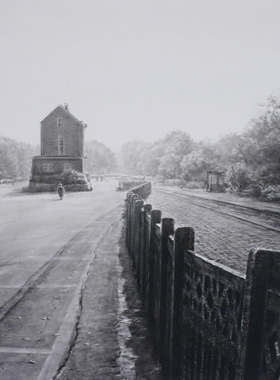 Titel: Oude rijn Afmetingen: 40x37cm Techniek: Krijttekening