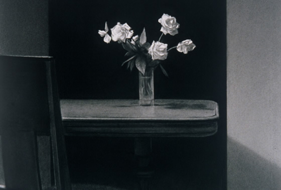 Titel: Stilleven met witte bloemen Afmetingen: 38x40cm Techniek: Krijttekening